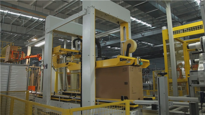 自動(dòng)包裝系統(tǒng)由自動(dòng)繞膜機(jī)、自動(dòng)開箱、套箱、自動(dòng)打釘、打包機(jī)、自動(dòng)化下線機(jī)等組成: