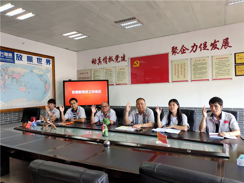 7月1日,為紀(jì)念中國共產(chǎn)黨建黨98周年,繼承和發(fā)揚黨的光榮傳統(tǒng),進一步發(fā)揮黨建引領(lǐng)作用和黨員的先鋒模范作用,以黨員帶動群眾,中國共產(chǎn)黨廣東匯興精工智造股份有限公司支部委員會(簡稱:匯興智造黨支部)組織開展“七一”黨建主題活動。匯興智造黨支部在黨員活動室召開“發(fā)展新黨員工作會議”,討論發(fā)展袁侃和蔣明華兩位同志為入黨積極分子,黨支部成員悉數(shù)參加會議。