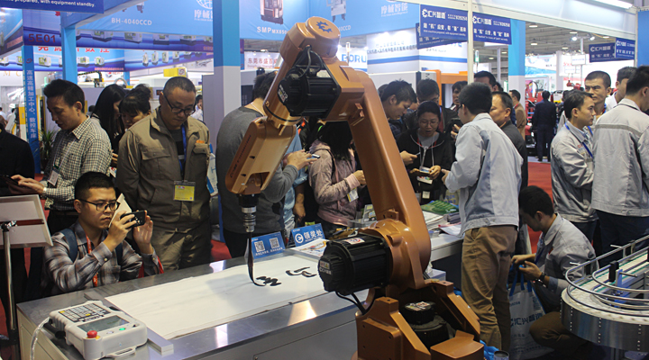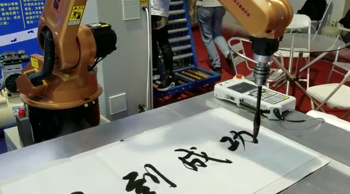 匯興智造推崇中國傳統(tǒng)文化,一直以傳承弘揚中國文化為己任,把中國傳統(tǒng)文化揉入工廠運營、產(chǎn)品設(shè)備已是一派自然而然。由匯興智造自主研發(fā)的書法機器人在本次博覽會上大展拳腳,深情演繹中國書法。