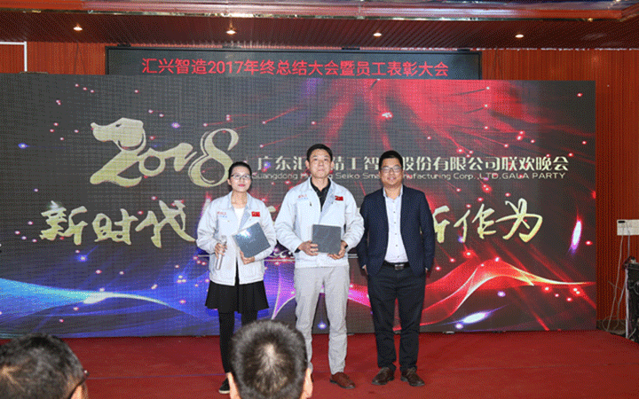 東莞證券何總、大信會計事務所黃總、華商律師事務所姜總等嘉賓致辭,均表示在2017年與匯興智造合作得相當愉快,同賀匯興智造取得驕人成績,并表達了在2018與匯興智造繼續(xù)合作的愿望,共祝匯興智造再創(chuàng)輝煌。