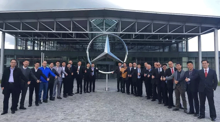 當(dāng)天下午,考察團(tuán)去到了梅賽德斯奔馳(Mercedes-Benz)汽車工廠。梅賽德斯奔馳在汽車界的地位就好比電影界的好萊塢,它是世界上最大的豪華轎車生產(chǎn)基地,目前共有員工31000多人,其中技術(shù)中心就有8000多名工程師與設(shè)計(jì)師。本次主要考察參觀機(jī)器人自動化s級生產(chǎn)線。(由于生產(chǎn)線禁止拍照,因此照片有限,下附合照一張)