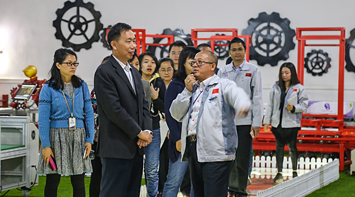 匯興智造董事長鐘輝陪同大家參觀工業(yè)4.0智能裝備體驗館