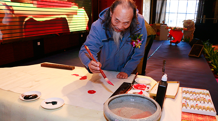 著名書畫藝術(shù)家?guī)X南畫派泰斗梁培浩教授現(xiàn)場創(chuàng)作<span style="font-family:" font-size:14px;"="">