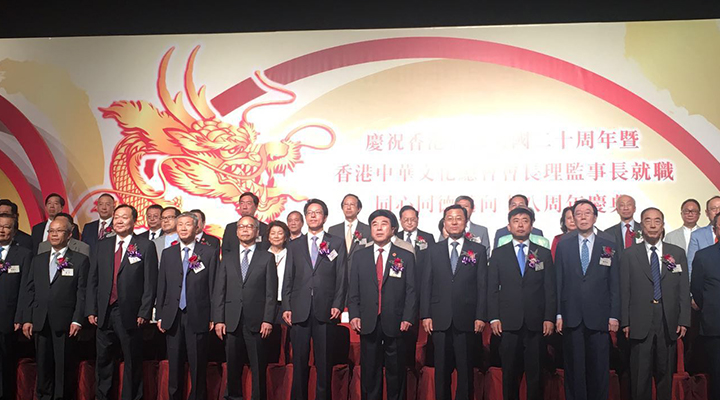 慶祝香港回歸祖國20周年暨香港中華文化總會會長理監(jiān)事長就職同心同德邁向18周年慶典,2017年8月15日于香港會展中心舉行。中聯(lián)辦主任張曉明,外交部駐港特派員謝峰,民政事務局局長劉江華等蒞臨主禮。全國政協(xié)教科文衛(wèi)體委員會副主任高靜德連任會長,姚志勝、魏明德榮任執(zhí)行會長。典禮延開逾百席,逾千名政商翹楚、社會賢達聚首一堂,共同見證,場面盛大。