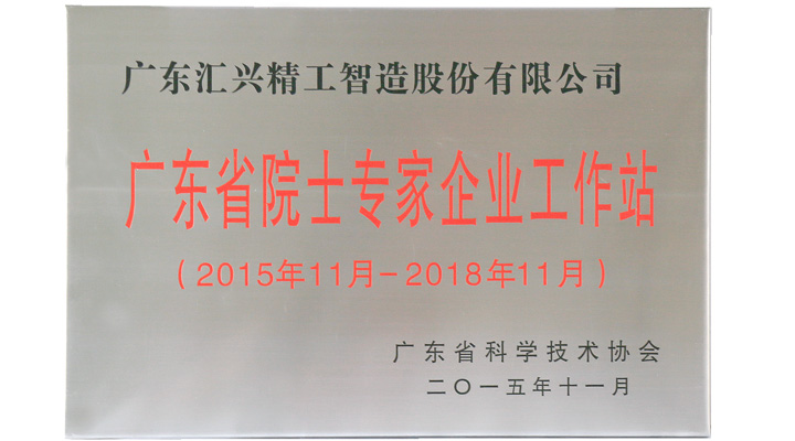 匯興智造廣東省示范院士專家企業(yè)工作站榮譽證書