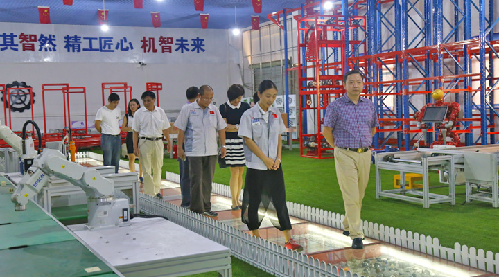 楊副院長一行在董事長鐘輝的陪同下參觀了企業(yè)的智能生產(chǎn)線演示、匯興精工智造工業(yè)4.0體驗館、工程研發(fā)部信息化組等部門,雙方表示今后要加強(qiáng)對接,細(xì)化合作內(nèi)容,創(chuàng)造更多的社會價值。在參觀過程中,董事長鐘輝向一行成員介紹了公司的發(fā)展歷程、經(jīng)營業(yè)務(wù)及取得成就,他表示作為掛牌上市公司,始終重視企業(yè)內(nèi)部的人才培養(yǎng)和技術(shù)革新,需要校企之間密切合作,并在不同的專業(yè)和領(lǐng)域搭建多種平臺,促進(jìn)校企間的優(yōu)勢互補(bǔ)和良性互動。