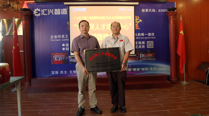 2017年9月27日下午, 東莞職業(yè)技術(shù)學(xué)院副院長楊云奇,計算機(jī)工程系主任胡選子博士,藝術(shù)設(shè)計系主任何鳳梅博士,計算機(jī)系曹文梁教授等專家人員一行蒞臨廣東匯興精工智造股份有限公司(股票代碼:839258)考察調(diào)研并舉行“物聯(lián)網(wǎng)人才培訓(xùn)中心“基地揭牌儀式。匯興智造董事長鐘輝,匯興中德智能制造研究院院長李康順教授熱情接待了調(diào)研組一行。