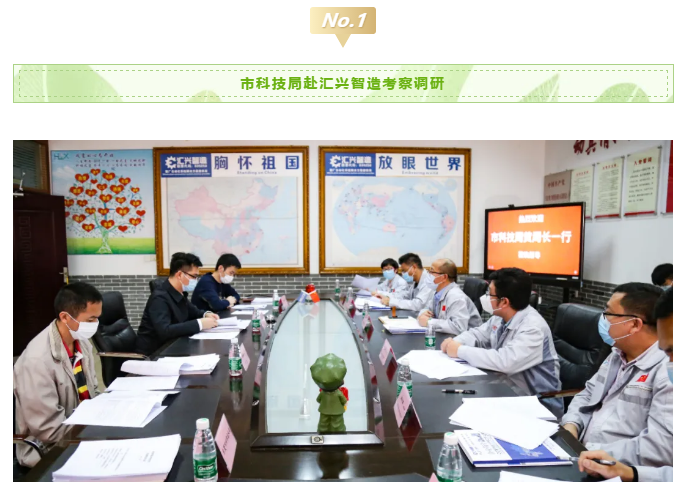 2020年3月11日,市科技局副局長黃天梁、科長李耀球、主任科員劉宇豪蒞臨匯興智造考察市重大科技項目攻關(guān)情況。匯興智造董事長鐘輝、技術(shù)總監(jiān)丁度坤博士、財務(wù)總監(jiān)彭理仕,副總經(jīng)理彭大海及知識產(chǎn)權(quán)部部長蔣明華等項目相關(guān)人員列席了會議。